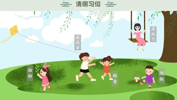 清明節的習俗是豐富有趣的,講究禁火、掃墓,還有踏青、蕩秋千、蹴鞠、打馬球、插柳等一系列風俗體育活動。相傳這是因為清明節要寒食禁火,為了防止寒食冷餐傷身,所以大家來參加一些體育活動,以鍛煉身體。因此,這個節日中既有祭掃新墳生別死離的悲酸淚,又有踏青游玩的歡笑聲,是一個富有特色的節日。
